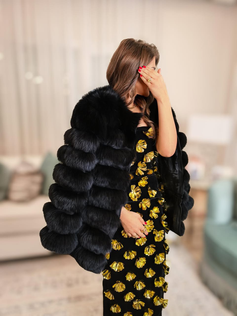 Cashmere cape with fox fur - model is we...