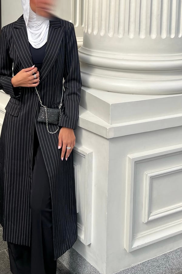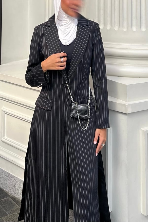 Black striped long blazer